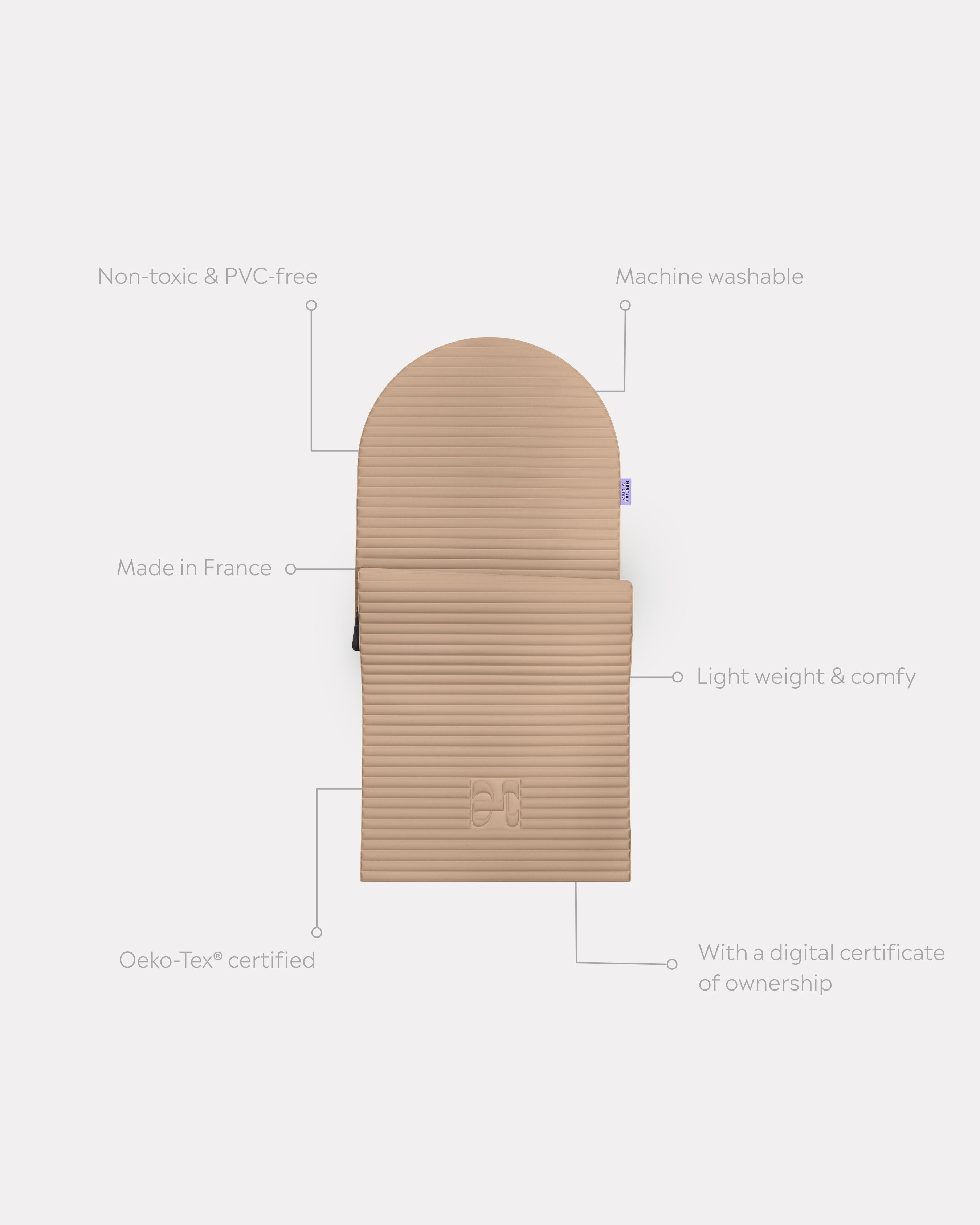 Its domed surface provides comfort and sensoriality, and its 0.8 cm thickness guarantees a firm yet welcoming hold. Its Dune color evokes the vastness of the desert and the warm, golden light of arid landscapes. Its sand hue recalls the raw, matte material of the earth, while adding a touch of sophistication. Its subtle, neutral beige captures natural light to create a warm and serene atmosphere. Minimalist, timeless, and elegant, the Dune fitness mat blends harmoniously into any interior, whether refined or more daring. It is the ideal choice for those seeking a balance between natural and modern.