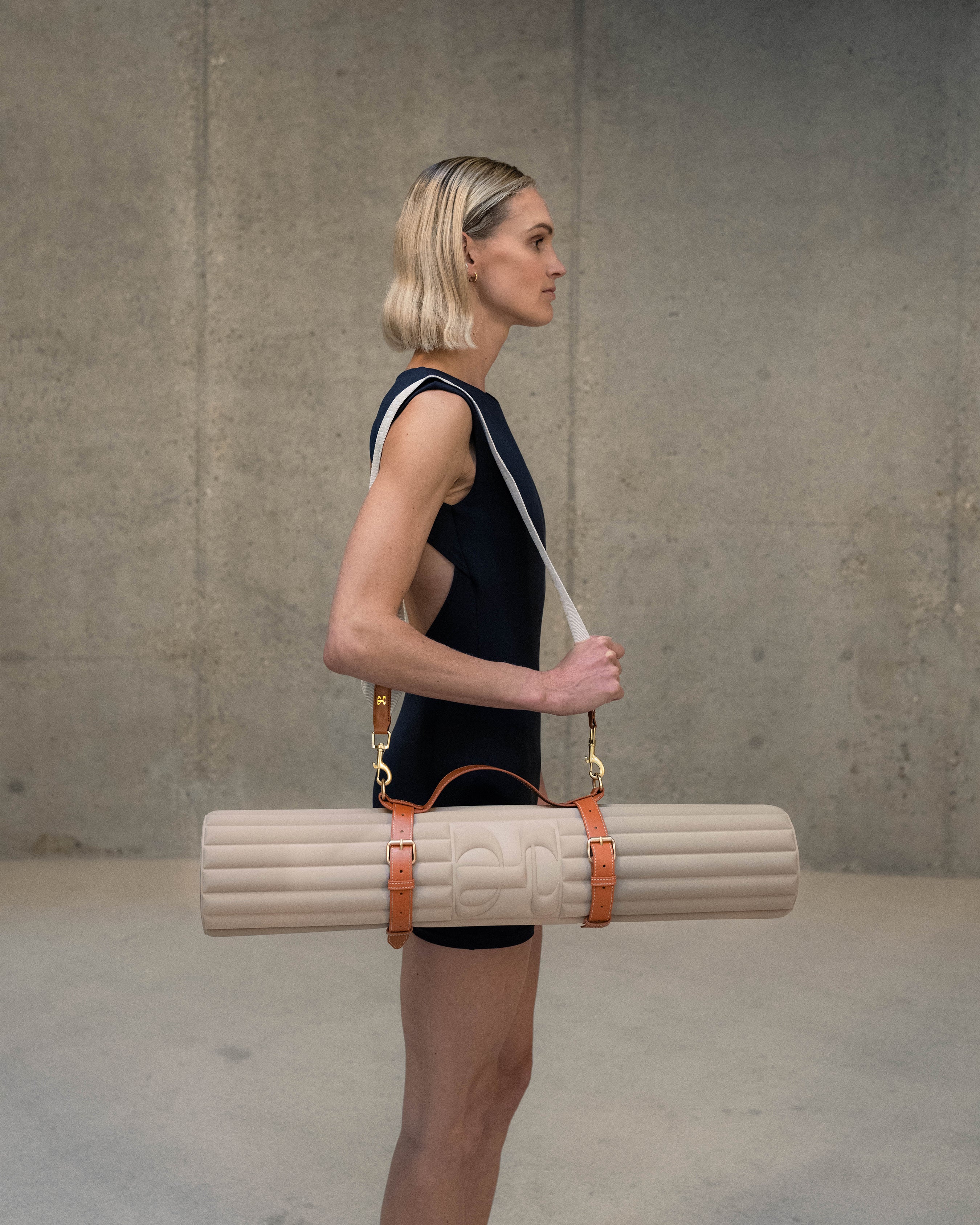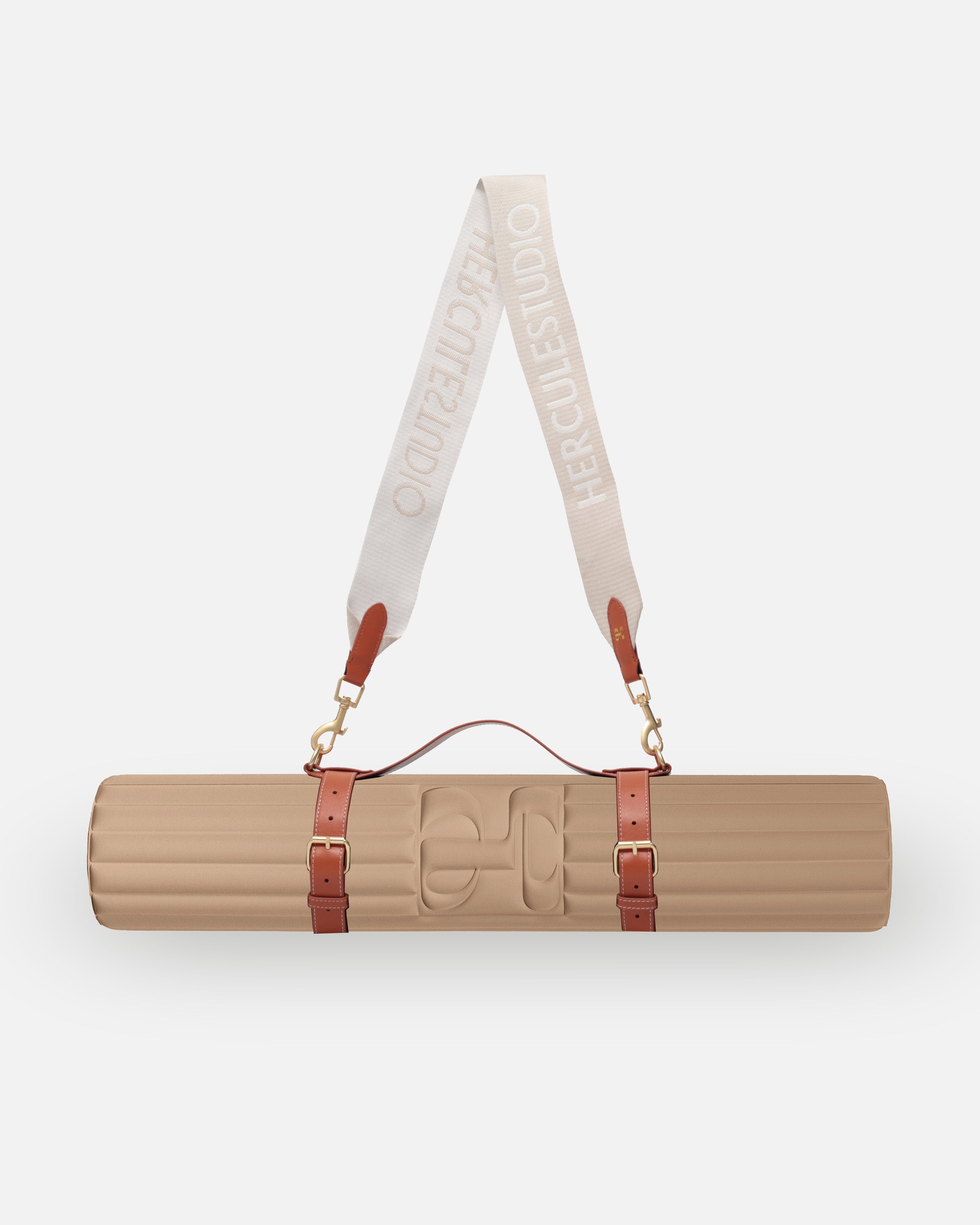 Set Nomade avec Tapis de sport Archy de la marque Hercule Studio couleur Dune et sangle de transport soca photo lifestyle