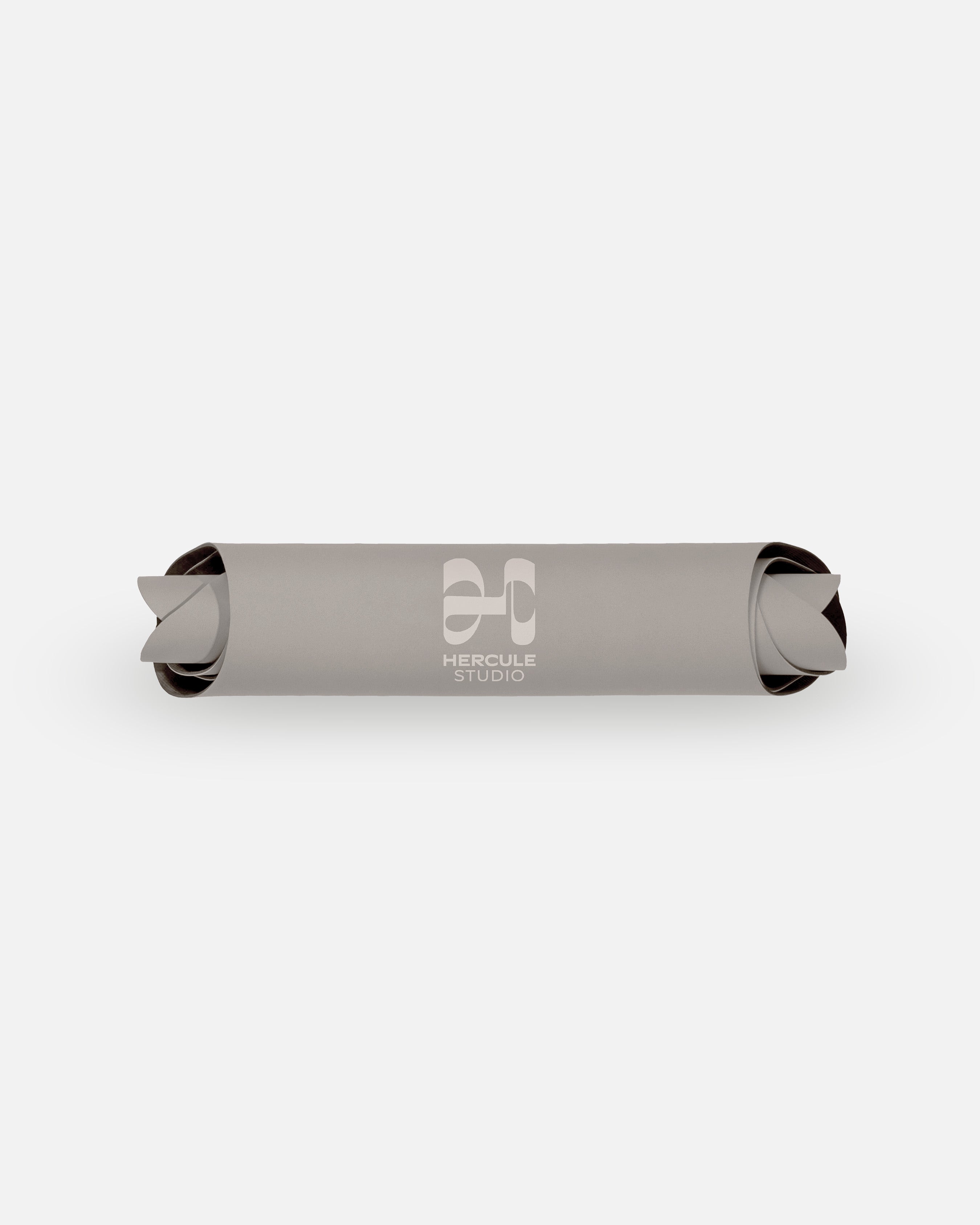 Tapis de sol pour le yoga de la marque hercule studio modèle mar couleur greige packshot roulé