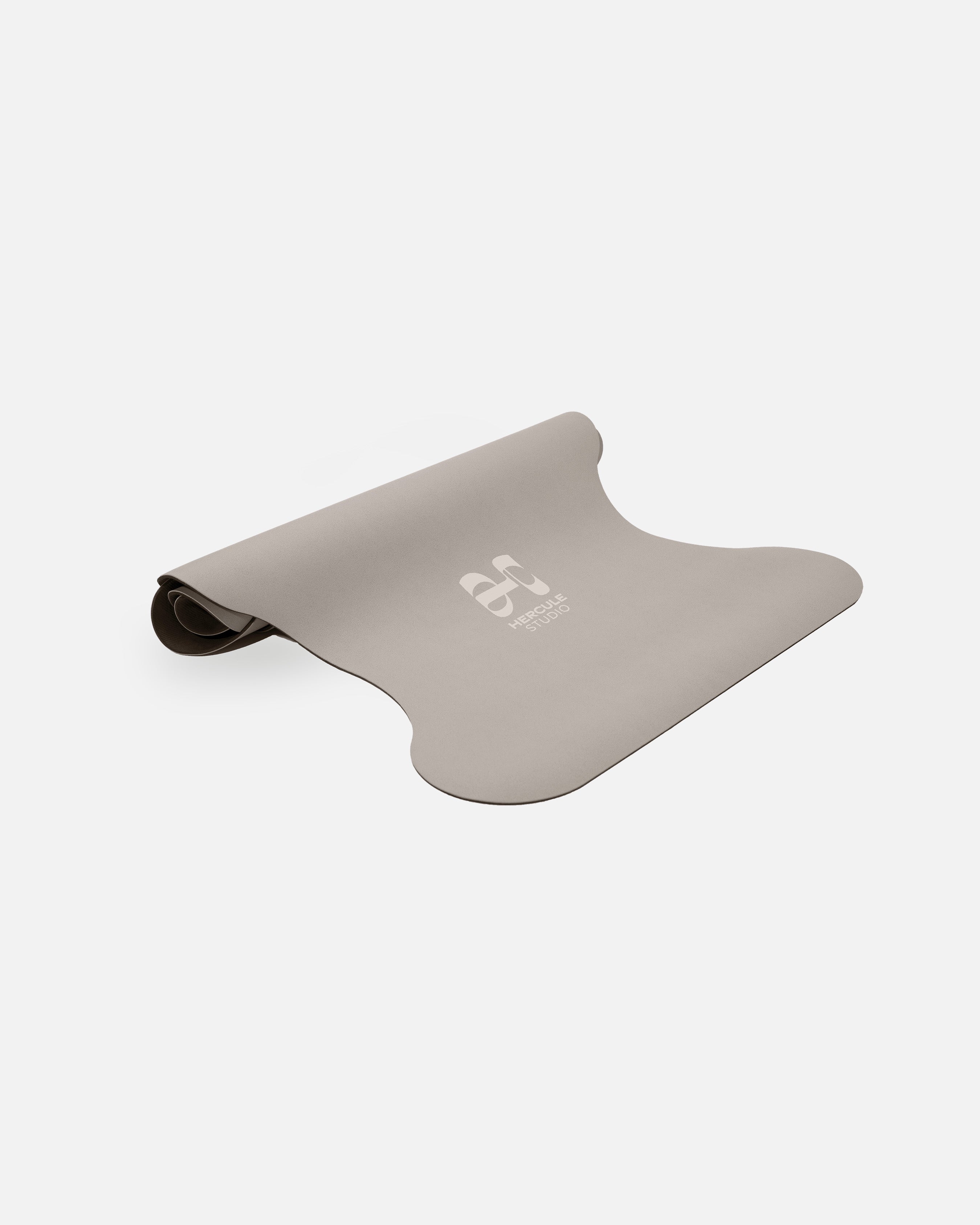 Tapis de sol pour le yoga de la marque hercule studio modèle mar couleur greige packshot semi roulé