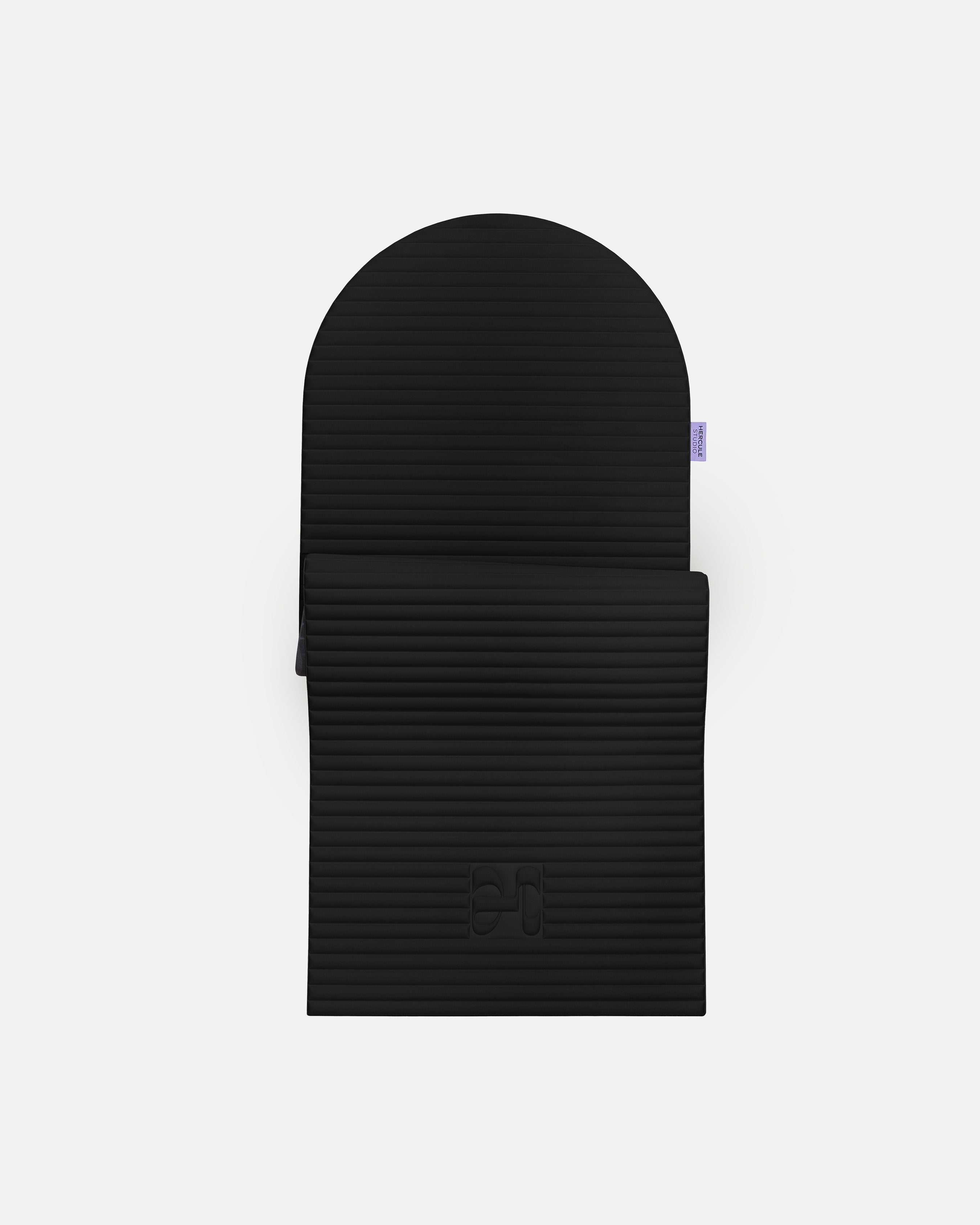 Its domed surface provides comfort and sensoriality, and its 0.8 cm thickness guarantees a firm yet welcoming fit. Its Outrenoir color draws its inspiration from the French painter Pierre Soulages and his perpetual quest for light and clarity through the reflection of light on black surfaces. The black reveals the curves and reliefs of the Archy sports mat with elegance and minimalism. It is a timeless piece of fashion and design. Archy Outrenoir is part of the continuity of a chic, graphic, and striking collection.